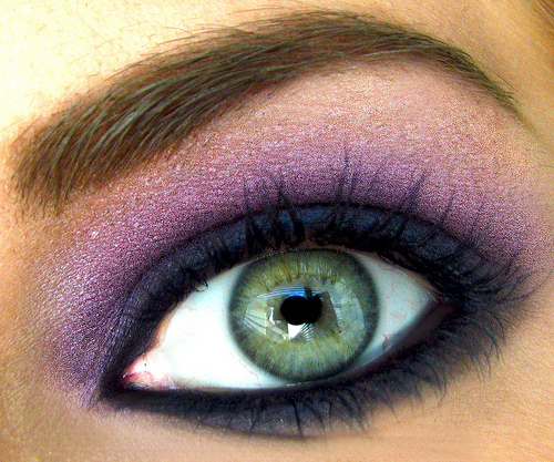Another shade recommended for people with green eyes is purple. It is better to use it, if you have a light shade of green eyes, in combination with a light shimmer. We recommend you to outline your eyes with a black pencil focusing on the mobile eyelid outward.