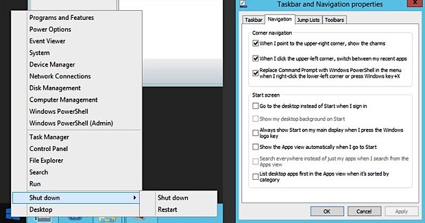 Users who were unhappy with the introduction of the option of booting directly into the main screen with Live Tile now have the facility to open the Windows 8.1 directly into the classic desktop. This is done by right-clicking the taskbar and then Properties, then Navigation tab. Select When I sign in or close apps on the screen, go to the desktop instead of home.